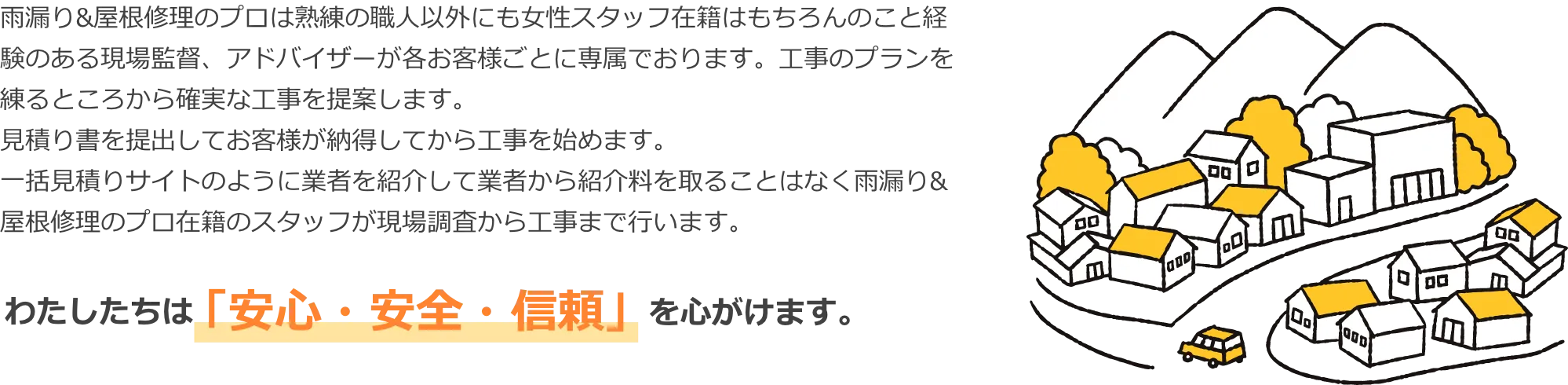 雨漏り&屋根修理のプロでは詳細な見積書を作成しておりますので、無駄な価格上乗せをしないことをお約束いたします。